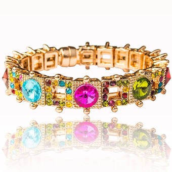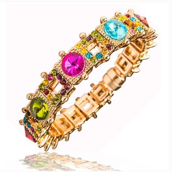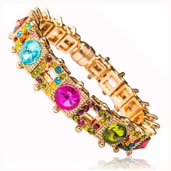 Bratara glamour unicat dedicata evenimentelor speciale, placata cu aur roz de 14k si cristale stralucitoare multicolore.