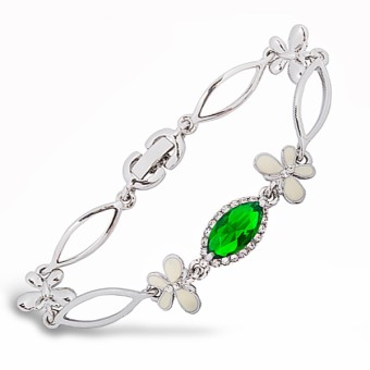 Bratara fashion cu design floral deosebit, placata cu platina si cristal Zirconiu de culoarea Smarald-ului.