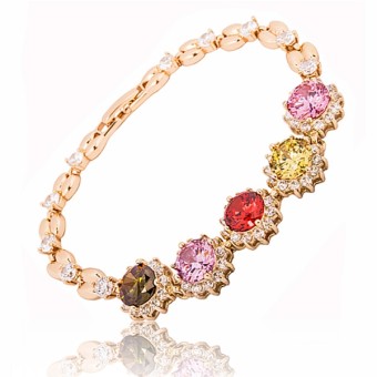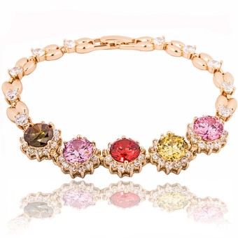 Bratara fashion cu motive florale, placata cu aur galben de 18k si cristale multicolore stralucitoare Cubic Zirconia.