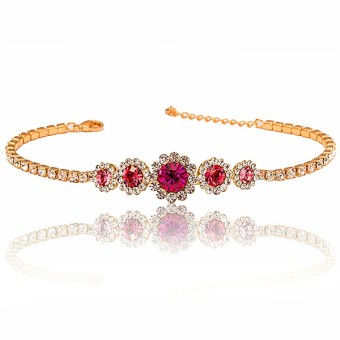 Bratara fashion cu design deosebit, placata cu aur galben de 18k si cristale austriece de culoarea Rubin-ului.