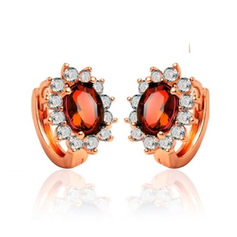 Cercei design clasic special, placati cu pietre semipretioase Zirconiu culoare Rubin si Aur roz 14k.