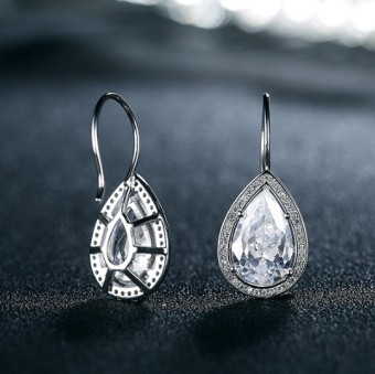 Cercei cu design regal dosebit, placati cu pietre semipretioase Zirconiu culoare Diamant si Rodiu.