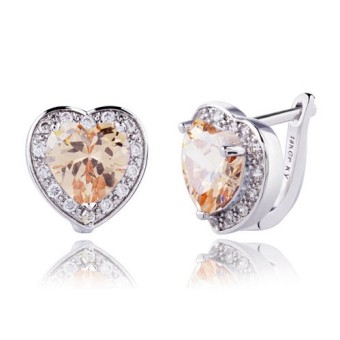 Cercei cu design luxury hearth, placati cu pietre semipretioase Zirconiu culoare Citrin si Aur alb 18k.