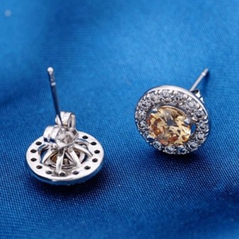 Cercei design special, placati cu pietre semipretioase Zirconiu culoare Citrin si Aur alb 18k.