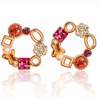 Cercei fashion, placati cu aur galben de 14k si elemente de cristale stralucitoare tip Swarovski.