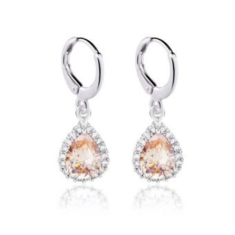 Cercei cu design luxury drop, placati cu pietre semipretioase Zirconiu culoare Citrin si Aur alb 14k.