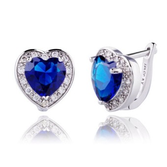 Cercei cu design luxury hearth, placati cu pietre semipretioase Zirconiu culoare Safir si Aur alb 18k.