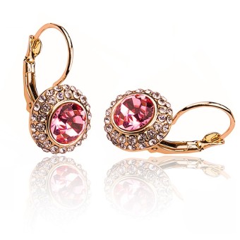 Cercei fashion, placati cu aur galben de 10k, piatra Cubic Zirconia (culoare Ametist) si cristale stralucitoare.