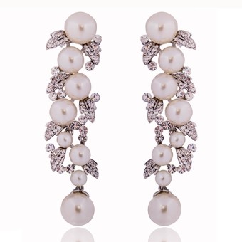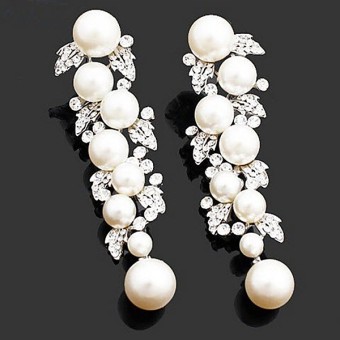 Cercei fashion dedicati evenimentelor speciale (nunta si logodna), placati cu Rodiu, perle de laborator si cristale stralucitoare.