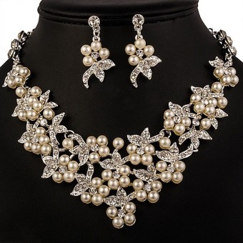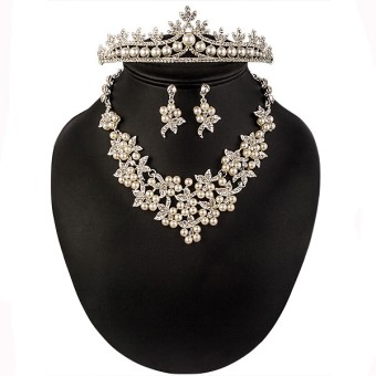 Un SET de accesorii remarcabil dedicate evenimentelor speciale din viata ta, bijuterii unicat pentru mireasa cu un design exceptional alcatuite din colier, cercei si tiara (diadema) si placate cu Argint 925, perle de laborator si cristale stralucitoare.