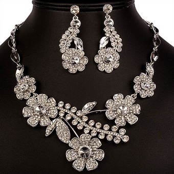 Un SET de bijuterii unic si incantator pentru nunta dedicate evenimentelor speciale din viata ta, accesorii unicat pentru mireasa cu un design exceptional alcatuite din colier si cercei, placate cu Aur alb de 14k si cristale stralucitoare.