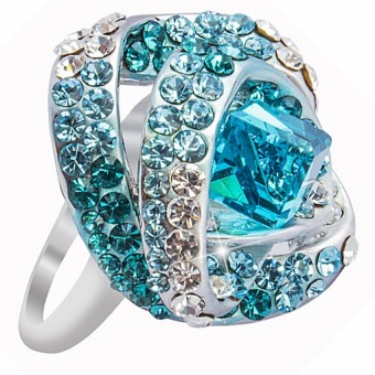 Inel glamour tip fashion, placat cu aur de 18k, pietre Cubic Zirconia (Aqua Blue) si cristale stralucitoare.