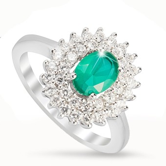 Inel din argint 925, placat cu rodiu, piatra semipretioasa Smarald creata in laborator special pentru tine.