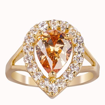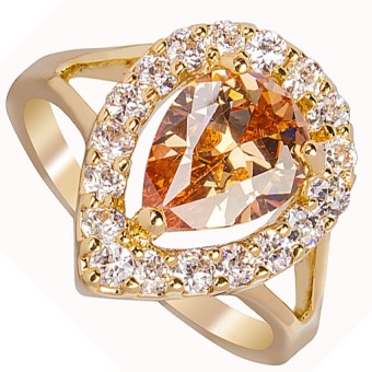 Inel glamour tip fashion, placat cu aur galben de 18k, piatra semipretioasa Citrin (creata in laborator) si cristale austriece stralucitoare.