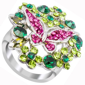 Inel glamour, elegant, modern, incantator, placat cu aur alb 18k, pietre Cubic Zirconia (create in laborator) si cristale stralucitoare.