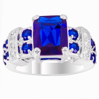 Inel elegant, placat cu aur alb 10k, pietre semipretioase Safir (create in laborator) si cristale stralucitoare.
