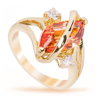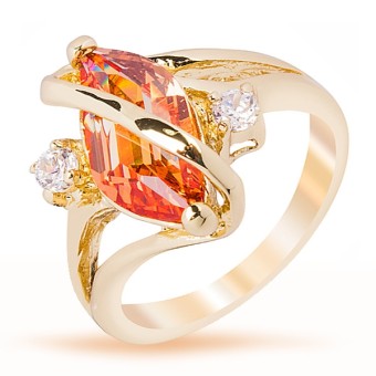 Inel fashion, placat cu aur galben de 14k, piatra semipretioasa Citrin (creata in laborator) si cristale stralucitoare.