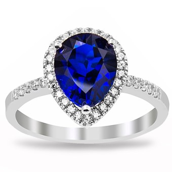 Inel din argint 925, placat cu rodiu, piatra semipretioasa Safir creata in laborator special pentru tine.
