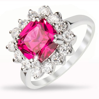 Inel din argint 925, placat cu rodiu, piatra semipretioasa Rubin creata in laborator special pentru tine.