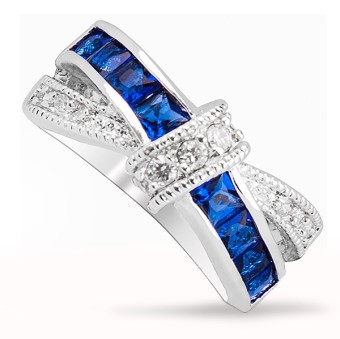 Inel fashion, placat cu aur alb de 10k, pietre pretioase Safir (create in laborator) si cristale stralucitoare.