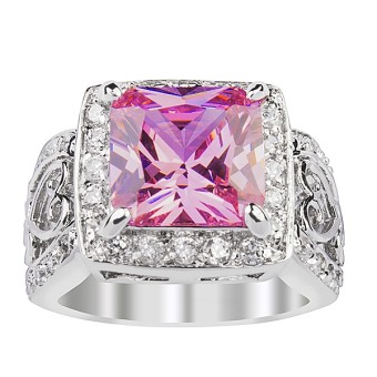 Inel logodna unisex, veritabil si elegant, modern si incantator, placat cu argint 925, pietre semipretioase (Ametist) si cristale austriece stralucitoare.