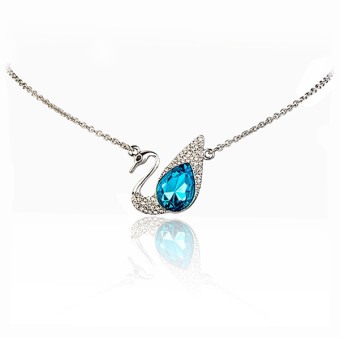 Lantisor cu pandantiv cu un design deosebit (lebada), placate cu Aur alb de 18k si cristale austriece stralucitoare tip Stellux.