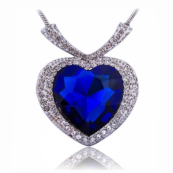 Lantisor cu pandantiv cu un design deosebit (Titanic Heart Safir), placate cu Aur alb de 18k si cristale stralucitoare.