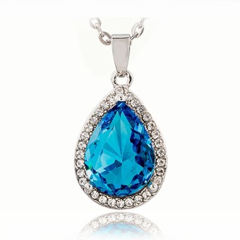 Lantisor cu pandantiv cu un design deosebit (culoare Blue Topaz), placate cu Aur alb de 14k si cristale austriece stralucitoare.