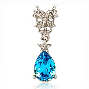 Lantisor cu pandantiv cu un design floral deosebit, placate cu Platina, elemente Swarovski (Blue Topaz) si cristale stralucitoare.