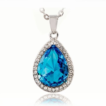 Pandantiv cu un design deosebit (culoare Blue Topaz) si lantisor, placate cu Aur alb de 14k si cristale austriece stralucitoare.