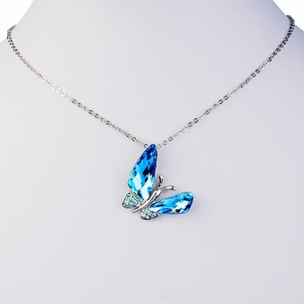 Pandantiv cu un design deosebit (fluture) si lantisor, placate cu Platina si cristale austriece stralucitoare.