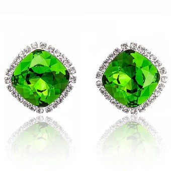 SET bijuterii fashion (cercei, lantisor si pandantiv) cu design deosebit, placate cu Platina si cristale de austricele Stellux stralucitoare, culoare Smarald.