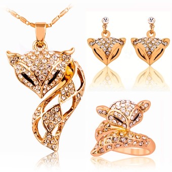 SET bijuterii fashion (cercei, inel, lantisor si pandativ) cu design deosebit, placate cu Aur galben 18k si cristale austriece.