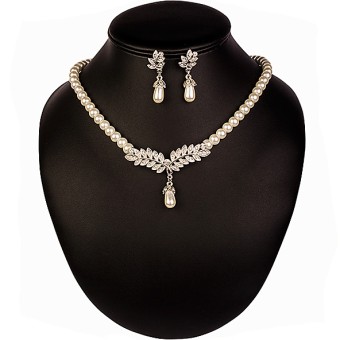 Un SET de bijuterii fashion dedicat special pentru tine, accesorii unicat pentru mireasa cu un design exceptional alcatuite din colier si cercei, placate cu Argint 925, perle de laborator si cristale stralucitoare.