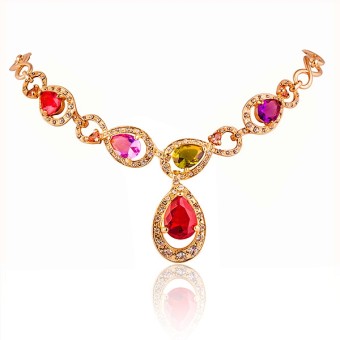 SET bijuterii glamour (inel, bratara, cercei si colier cu pandantiv) cu design deosebit, placate cu Aur roz de 18k si cristale austriece multicolore.