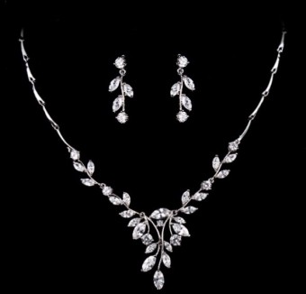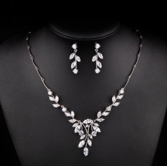 Set de bijuterii mireasa incantator (colier si cercei), bijuterii unicat pentru tine cu un design de exceptie placate cu Platina si pietre semipretioase Zirconiu.