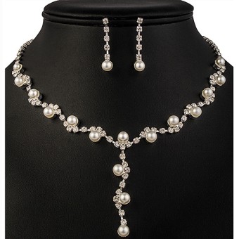 Un SET deosebit de accesorii dedicate evenimentelor speciale, bijuterii unicat pentru mireasa cu un design exceptional alcatuite din colier, cercei si tiara (diadema) placate cu Argint 925, perle de laborator si cristale stralucitoare.