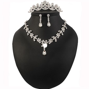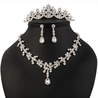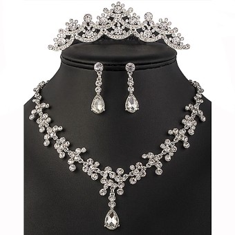 Un SET de bijuterii remarcabile, accesorii speciale pentru mireasa, cu un design exceptional alcatuite din colier, cercei si tiara (diadema) placate cu Argint 925 si cristale stralucitoare.