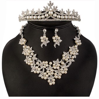 Un SET remarcabil de accesorii dedicate evenimentelor speciale din viata ta, bijuterii unicat pentru mireasa cu un design exceptional alcatuite din colier, cercei si tiara (diadema) si placate cu Argint 925, perle de laborator si cristale stralucitoare.