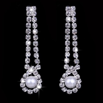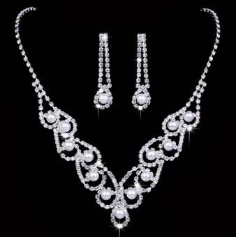 Set veritabil de bijuterii pentru mireasa tip glamour (colier si cercei), bijuterii deosebite pentru evenimente speciale, cu un design de exceptie placate cu Perle, Argint 925 si cristale stralucitoare.