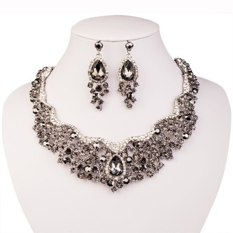 Un SET special de accesorii dedicate evenimentelor unice, bijuterii unicat pentru mireasa cu un design exceptional alcatuite din colier si cercei, placate cu Aur alb de 10k si cristale stralucitoare.