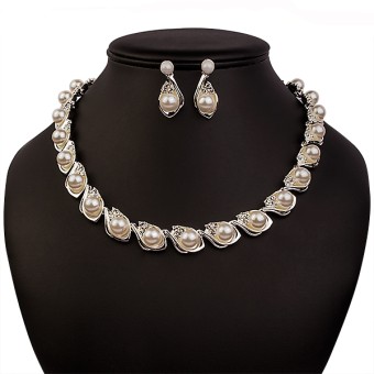 Un SET de bijuterii unicat, dedicate special pentru tine, accesorii unicat pentru mireasa cu un design exceptional alcatuite din colier si cercei, placate cu Aur alb 10k, perle de laborator si cristale stralucitoare.
