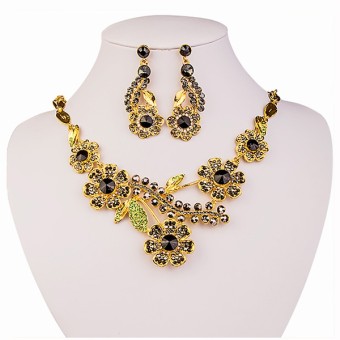 Un SET unic si incantator de accesorii dedicate evenimentelor speciale din viata ta, bijuterii unicat cu un design exceptional alcatuite din colier si cercei, placate cu Aur galben de 18k si cristale stralucitoare.