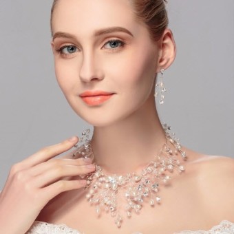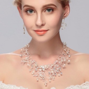 Un set de bijuterii fashion pentru nunta ta (colier si cercei), accesorii unicat pentru mireasa cu un design exceptional placate cu Argint, cristale si perle de laborator.