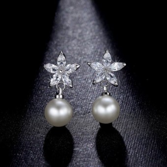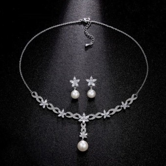Set de bijuterii mireasa (colier si cercei), bijuterii pentru nunta cu un design exceptional placate cu Platina si cristale Zirconiu.