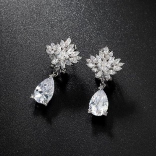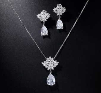 Set de bijuterii unicat pentru mireasa (colier si cercei), bijuterii speciale pentru tine cu un design exceptional placate cu Platina si pietre semipretioase Zirconiu.