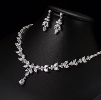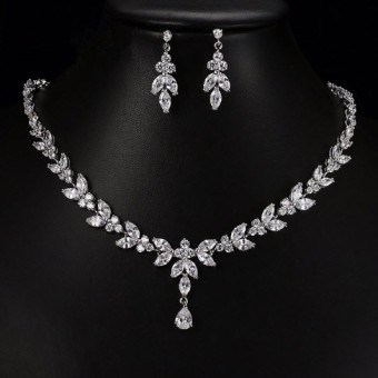 Un set de bijuterii de nunta glamour Safiria (colier si cercei), bijuterii speciale pentru mireasa cu un design modern placate cu Aur alb 18k si pietre semipretioase Zirconiu.