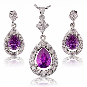 SET bijuterii fashion (cercei, lantisor si pandantiv) cu design deosebit, placate cu Aur alb 18k, cristale de Zirconiu stralucitoare culoare Ametist si cristale austriece.