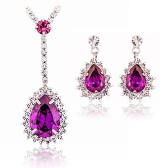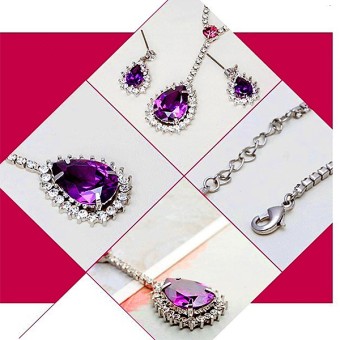 SET bijuterii glamour special (cercei, lantisor si pandantiv) cu design deosebit, placate cu Platina si cristale de Zirconiu stralucitoare, culoare Ametist.