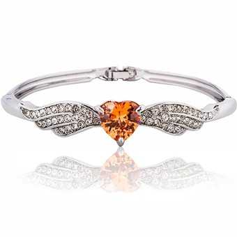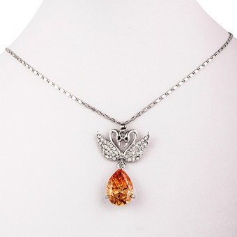 SET bijuterii fashion (cercei, inel, bratara, lantisor si pandativ) cu design deosebit, placate cu Platina, cristale de Zirconiu stralucitoare culoare Citrin si cristale austriece.